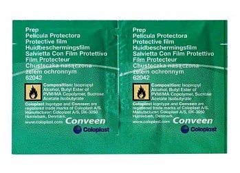 Защитная пленка в салфетках «Преп» используются для ухода за кожей перед применением самоклеящегося уропрезерватива.