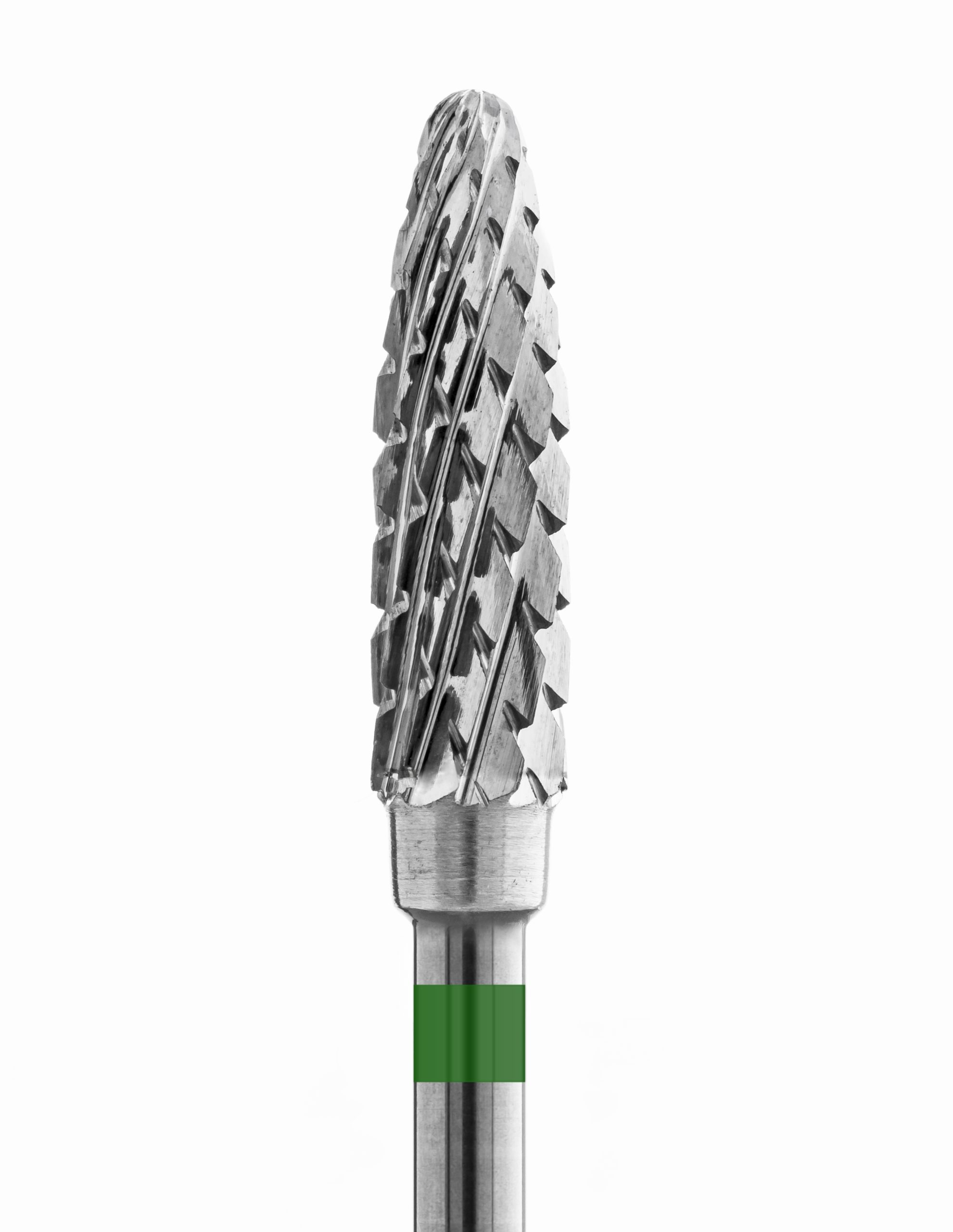 Форма – пулевидная, нарезка – крупная крестообразная, насечка – зеленая, изготовлена из высококачественной нержавеющей стали, не подвержена коррозии, максимально долго сохраняет заточку и подходят для большинства маникюрных аппаратов.