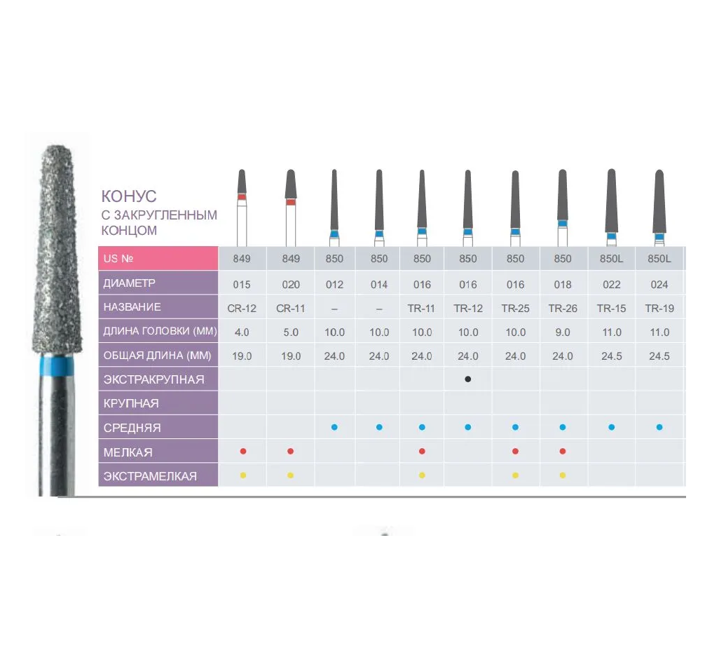 Боры алмазные Prima Classic 850L-024M (TR-19)