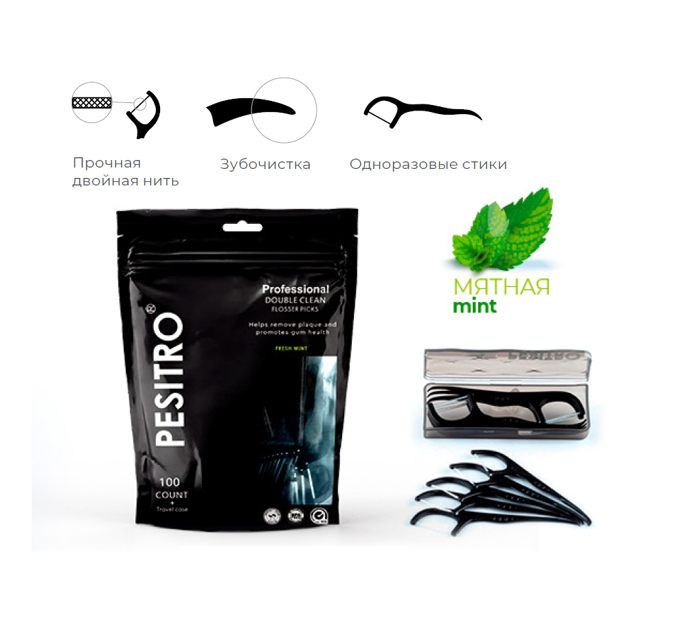 Флоссер Pesitro 100шт. + кейс, мята