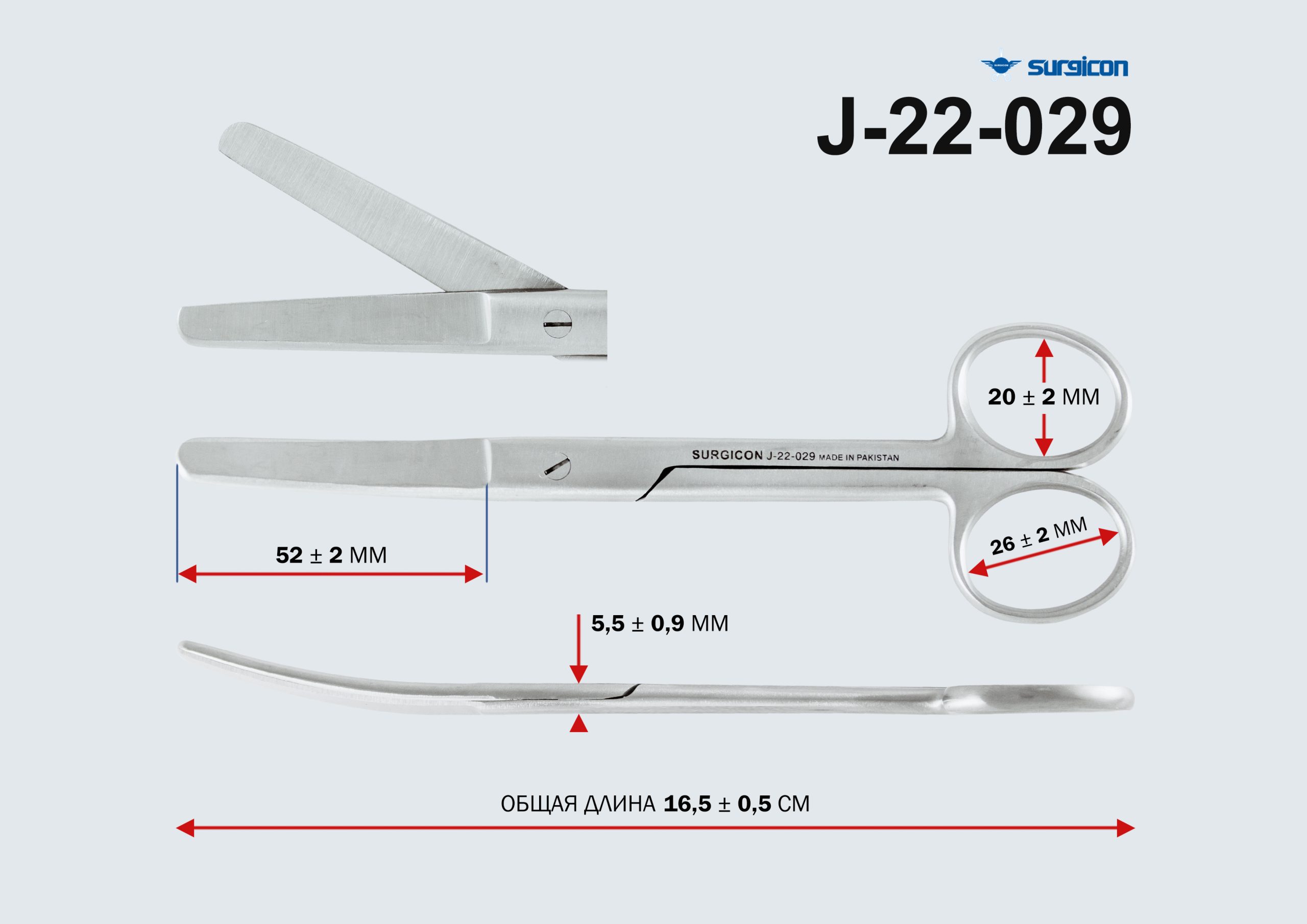 J-22-029 Ножницы тупоконечные, в/из., 165 мм, Сурджикон